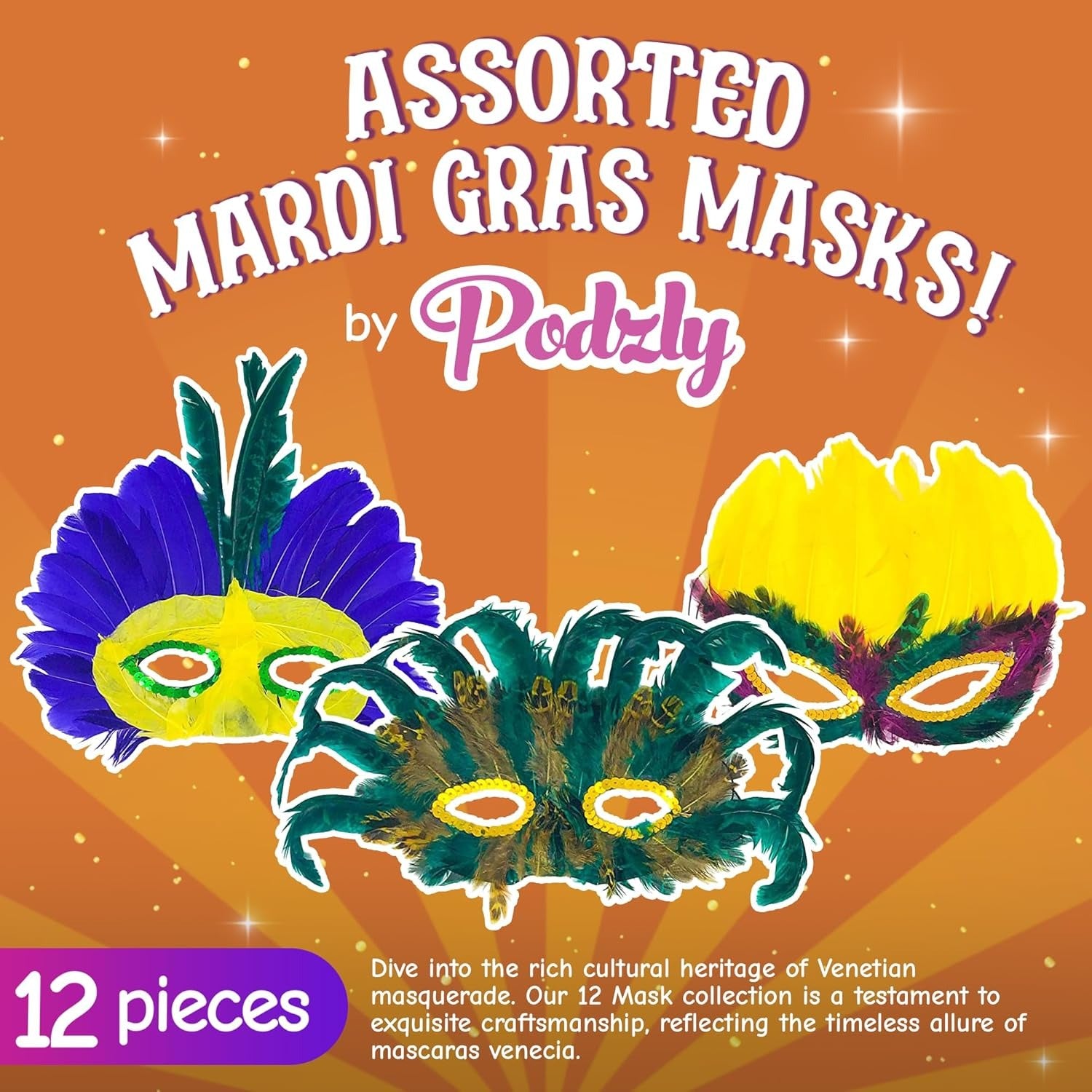 - ELEVATE YOUR CELEBRATION: Podzly's 12 Assorted Mardi Gras Masks are crafted for style. Ideal for New Year's Eve and festivities, these masks embody Mascarade Mardi Gras spirit. With precision and elegance, each mask enhances your appearance, radiating sophistication at every event.
