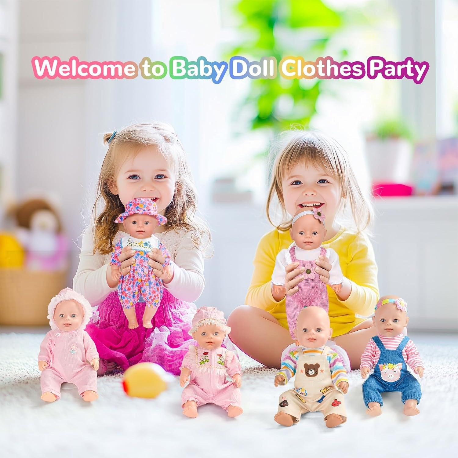 TNIRVAK 12 Sets 14-16-Inch Baby Doll Clothes Outfits, Dress, Headbands, Accessories Compatible With 43cm New Born Baby, 15-inch and 18-Inch Dolls