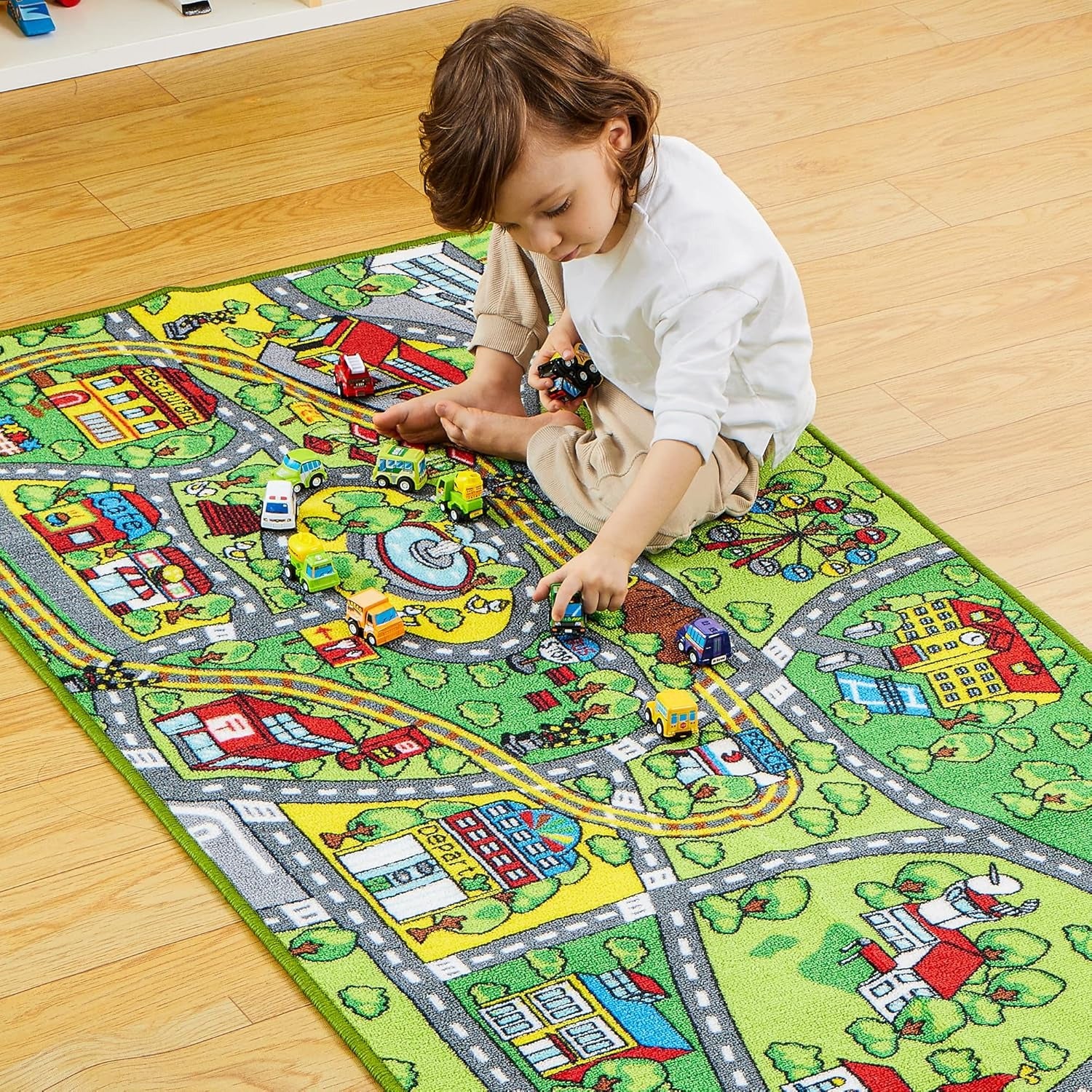 - ENDLESS FUN. Our Model Cars Kit with City-Themed Playing Rug Set is here to help your child spend endless hours of educational fun thanks to its unique city life design and fantastic colors!ideal for boosting your child’s vocabulary development, hand-eye coordination, motor skills, pretend play and narrative role-play skills! It’s a perfect gift for holiday toys, school classroom prize, kids intelligent learning toys, baby shower gifts, birthday parties, and more!