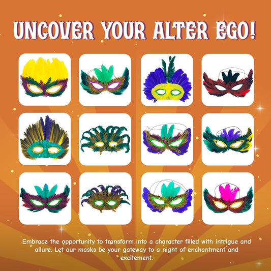TNIRVAK- 12 Assorted Mardi Gras Masks - Party Masks - Ideal for Celebrations, Carnival, Prom, Ballroom - Perfect for New Year's Eve - Antifaces Elegantes, Venetian Masquerade Mask, Mascaras Venecia